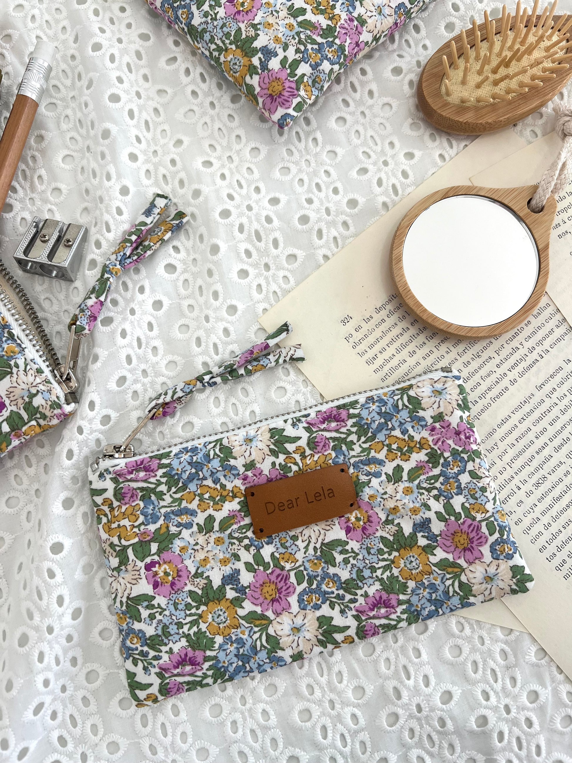 The L size has two large pockets and is perfect for traveling, makeup, or cables and batteries