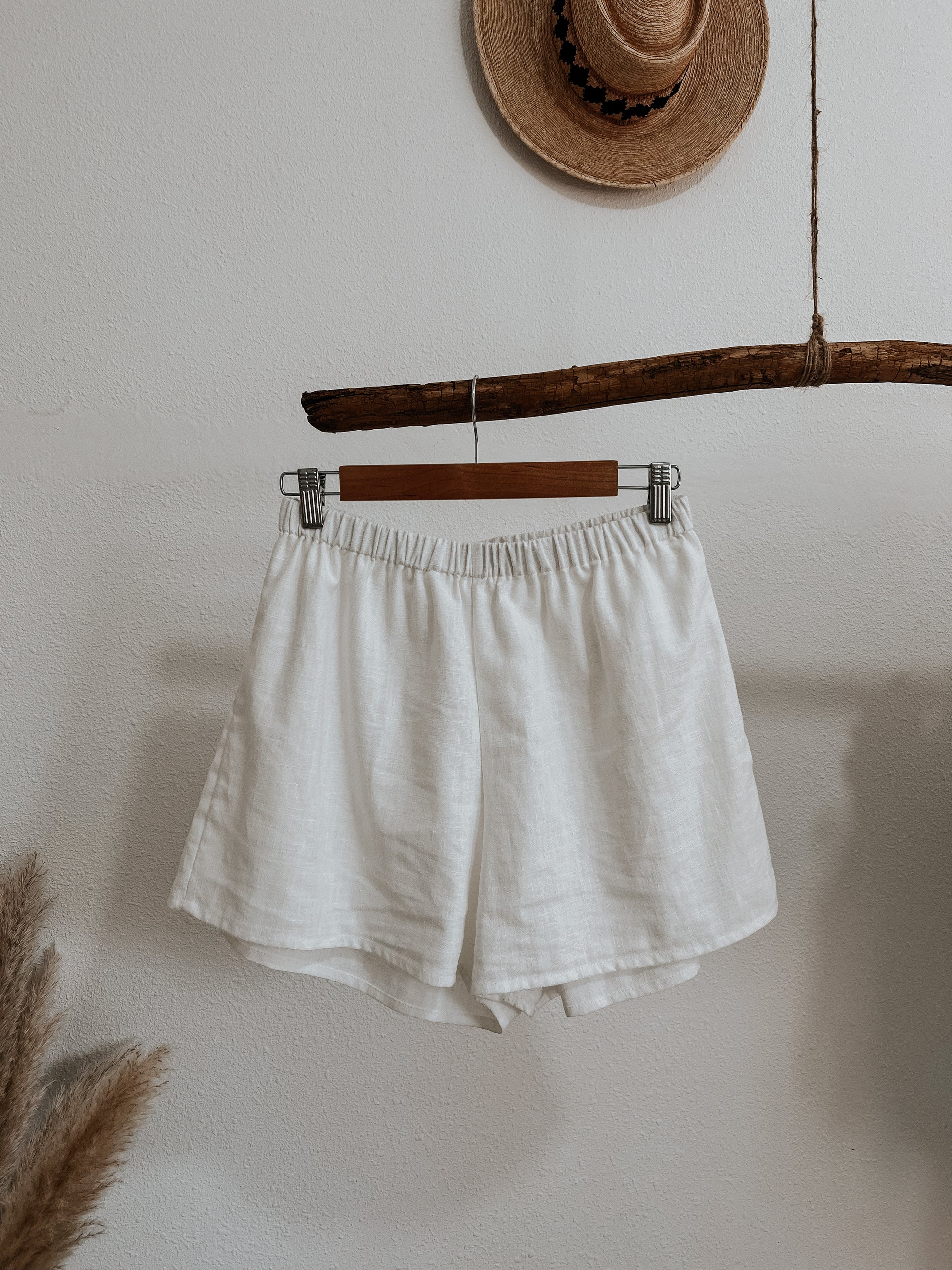 White linen shorts