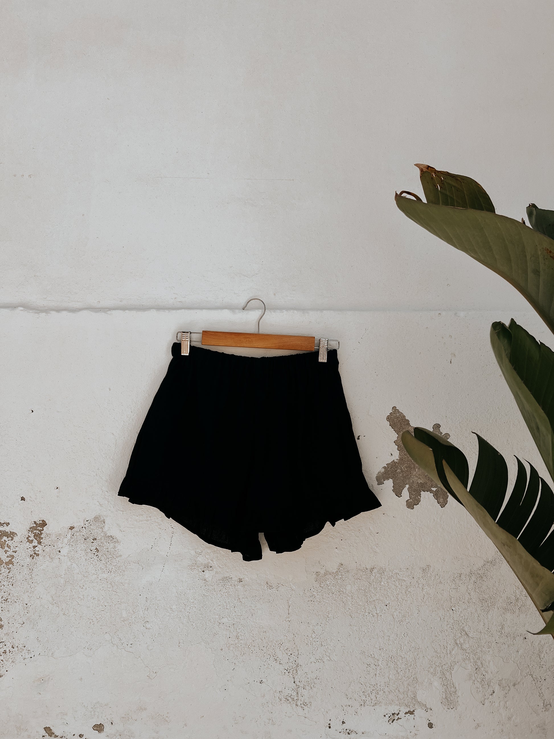 Black linen ruffled shorts